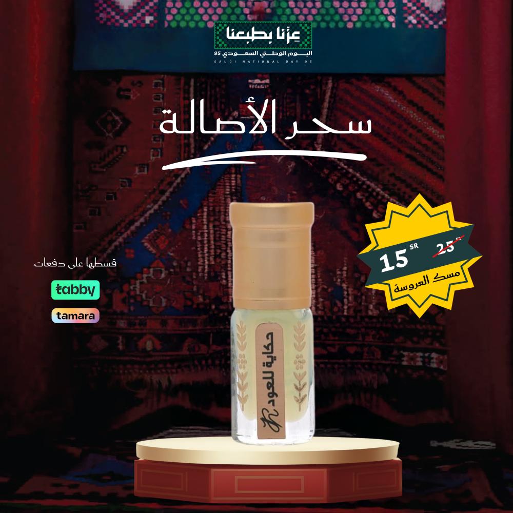 مزيج مسك العروسة من حكاية للعود ، تركيبته معقدة وتتكون من عناصر طبيعية مختلفة ذات روائح فاخرة وغنية بلمسات رقيقة تعبر عن الأنوثة ، نفحاته طويلة الأمد عميقة وجذابة وهي رمزاً للأنوثة والجمال اذ تساهم في إبراز سحرك وأناقتك وتمنحك الشعور بالثقة والتألق لتترك خلفك انطباعاً رائعاً دائماً ، حيث تعكس لديك الشعور بالإنتعاش والسعادة والبهجة أيضاً ، ويعتبر طول أمد رائحة مسك العروس وثباته القوي ميزة رائعة تضاف إليه ، مناسب للمناسبات الرسمية والهامة ولكل الأوقات ،